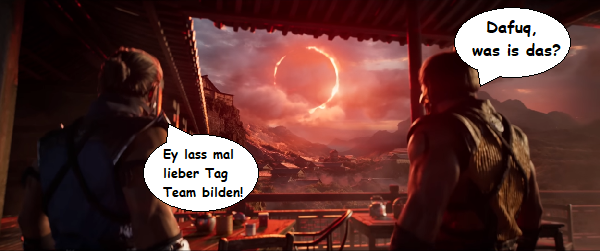 Höret die Worte. Liu Kang spricht sau viel über Entscheidungen. Die Wahl zwischen Krieg und Frieden. Hat das vielleicht etwas mit dem Story Mode zu tun? Ich habe dazu folgende Theorie:Die Charaktere haben nun eine neue und "neutralere" Hintergrundstory. Das bedeutet, dass sich die Leute bereits kennen, allerdings noch keine Fehden entstanden sind. Da passt doch die Szene von Scorpion und Sub-Zero wie der Spear in den Brustkorb: Man sieht, wie sich die Beiden zunächst gegenüberstehen. Sie gucken erst grimmig und gehen aufeinander zu...und dann schauen sie zusammen Richtung Portal.