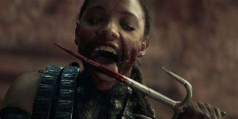 Kitana wurde für den nächsten Teil schon angekündigt und wird von einer Asiatin gespielt. Sie sieht also so aus wie im Spiel. Warum nicht Mileena? Warum ist sie schwarz? Sie ist Kitanas KLON. Also wenn man hier schon Raceswapping betreibt um irgendwelche Regenbogenmenschen zu pampern, hätte man auch Kitana von einer Schwarzen spielen lassen müssen. Jetzt haben wir nämlich ein Logikproblem. Hoffentlich findet man eine passende Erklärung. Vielleicht ist das Tarkatanerblut schuld?