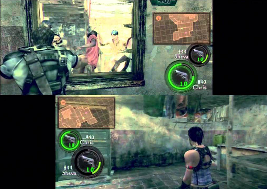 Wie bereits beschrieben, spielt man hier zu zweit - ob man will oder nicht. Denn wenn man alleine spielt, steuert die CPU den anderen Charakter. Teil 4 hatte schon wenig mit einem echten Resident Evil zu tun, da die Rätsel fehlten. Jetzt ist es auch noch weniger gruselig, weil man nicht mutterseelenallein durch die Gegend gurkt. Dennoch hat es seinen ganz eigenen Reiz, das Spiel zu zweit zu bestreiten. Vor allem macht das das Spiel nicht unbedingt leichter, da man nicht nur auf seinen eigenen Arsch aufpassen muss.